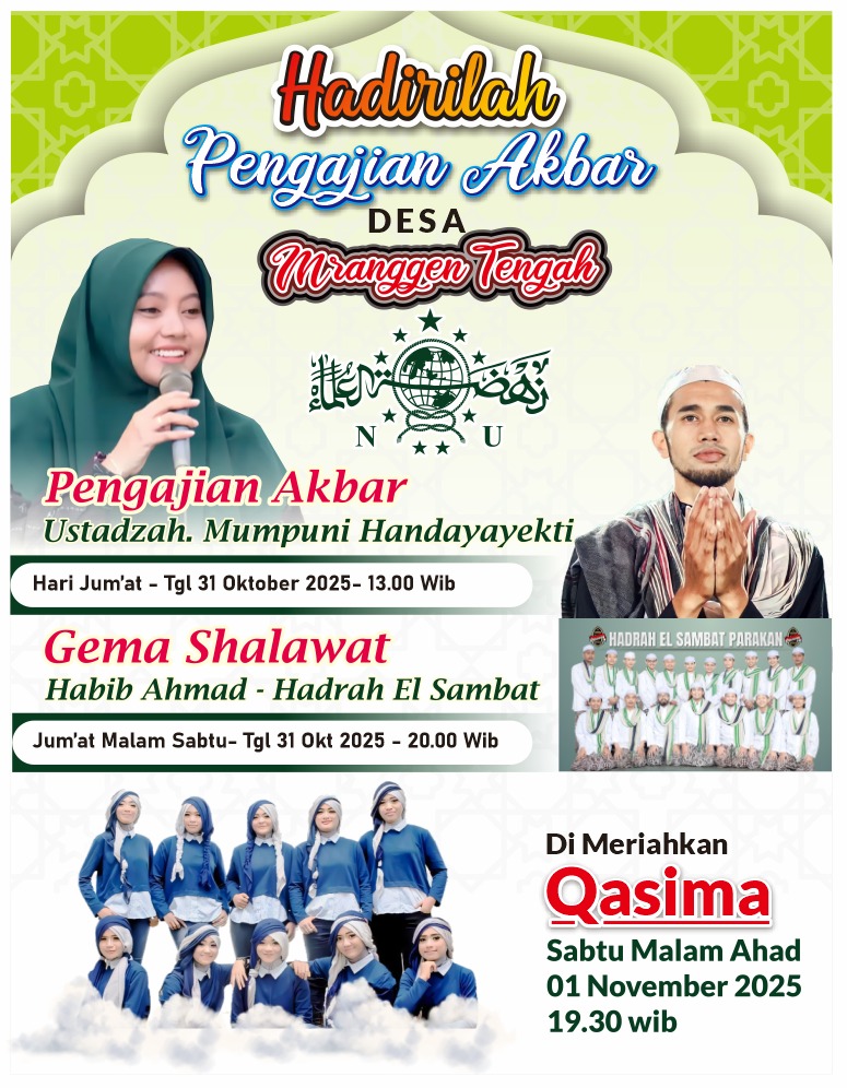 Pengajian Akbar Desa Mranggen Tengah Bersama Ustadzah Mumpuni Handayekti dan Gema Sholawat Nabi bersama habib Ahmad Assegaf dan Hadroh Elsambat Temanggung
